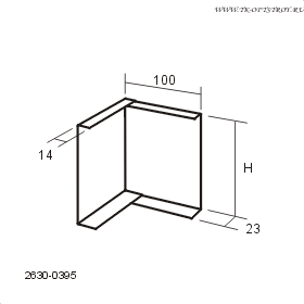 H=95 мм. Оцинкованная сталь, цвет белый 010. Угловой элемент для торцевого теневого профиля Connect 0394.